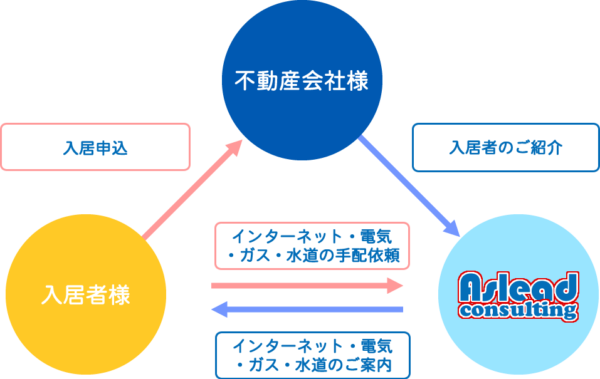 新規ご入居者様向けに新生活に必要となるライフライン(インターネット・電気・ガス・水道)のお手配・代行、サポート等を承っております。