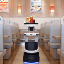 大手飲食店も導入の配膳・下げ膳ロボット。導入しやすいレンタルプランもあります。人件費削減やお客様満足度向上に寄与します。